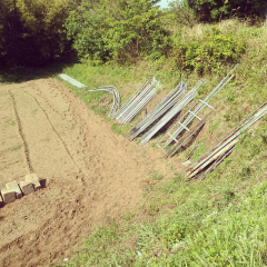 ハウスの部材を畑に運び込み完了! #作業場