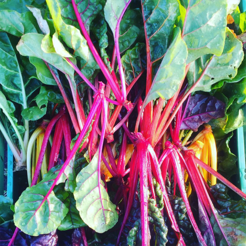 今月のみそみそ便のおまけはこれ。スイスチャード。西洋ふだん草とか虹色菜とかいろんな名前で呼ばれてますがとにかく色が綺麗。サラダに入れるともれなくオシャレになります。