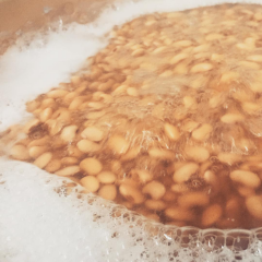 今日は大豆をコトコト。シトシト雨の音を聞きながら。 #味噌造り