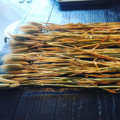ダークブラウンのテーブルに置いただけなのに、なぜかときめく麦の穂。 #麦の穂