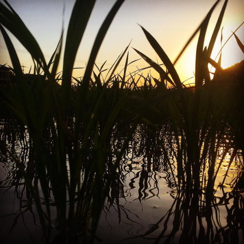 田んぼの夕暮れ。今日もたくさんの生き物に出会いました #米 #畑の風景