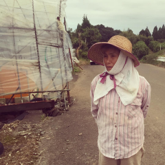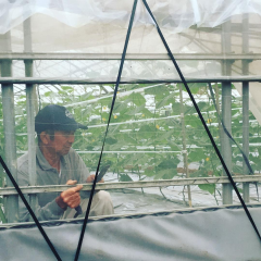 久しぶりのカットシさんをハウス越しに発見して声をかける。