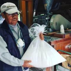 さっきまでニコニコしてたのに写真撮るって言ったらこんな顔。精麦所の渡辺さんのおかげでいいこなができました。 #人々 #大麦粉