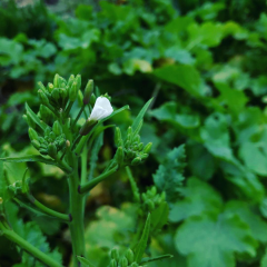 ひっそりと小さな大根な花が一つ咲いていました。今日はひなまつりです。