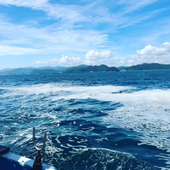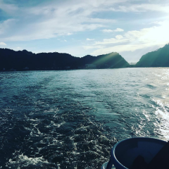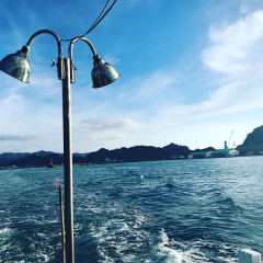 そして港に入ると、ちょうど自衛隊の大きな船が出港するところ…もう少し遅ければ、あの船が立てた波で確実にやられていたと思います。