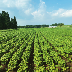 大豆の中耕作業は真夏の炎天下で行われる、一年の中でもっとも過酷な作業のひとつ。