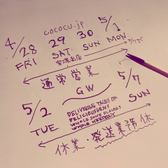 オンラインショップにて着日指定でご注文いただけます。※予約なしで店頭購入も可能です(5/13・5/14)