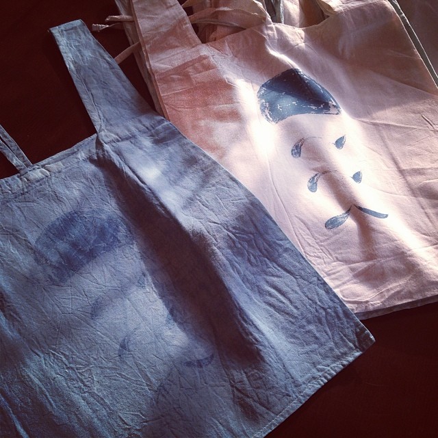 右上は大成功。左は薄すぎたので全部染めてやった。藍はいいなぁうん。取り憑かれそうだ