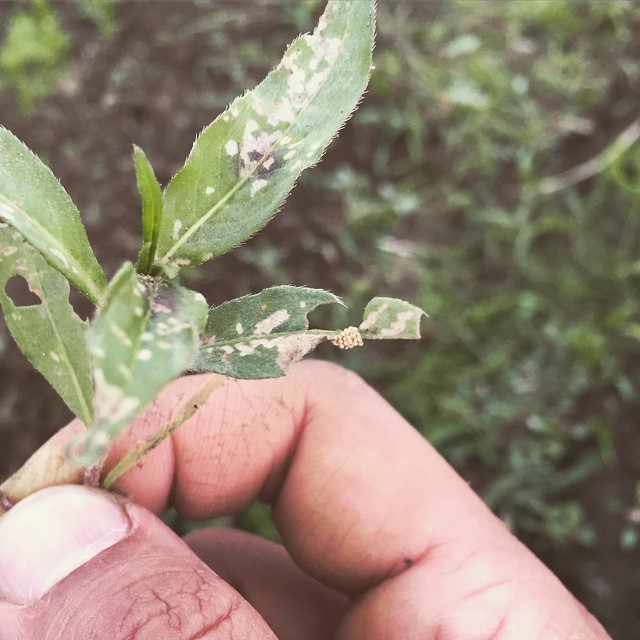 蓼食う虫も好きずき。こんな不味そうな葉っぱに卵まで。