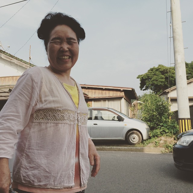 黒大豆と小豆、このおばちゃんにもらいました。加工場の向かいに住むチーちゃんこと、チズ子さんです。