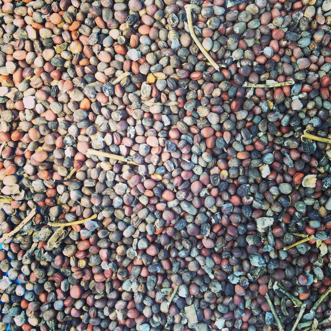 米良大根の種。サヤを手でもんで風でゴミを飛ばしてまた揉んで…を繰り返してようやくここまでになりました。いろんな色でキレイです。 #米良ダイコン #自家採種 #在来種