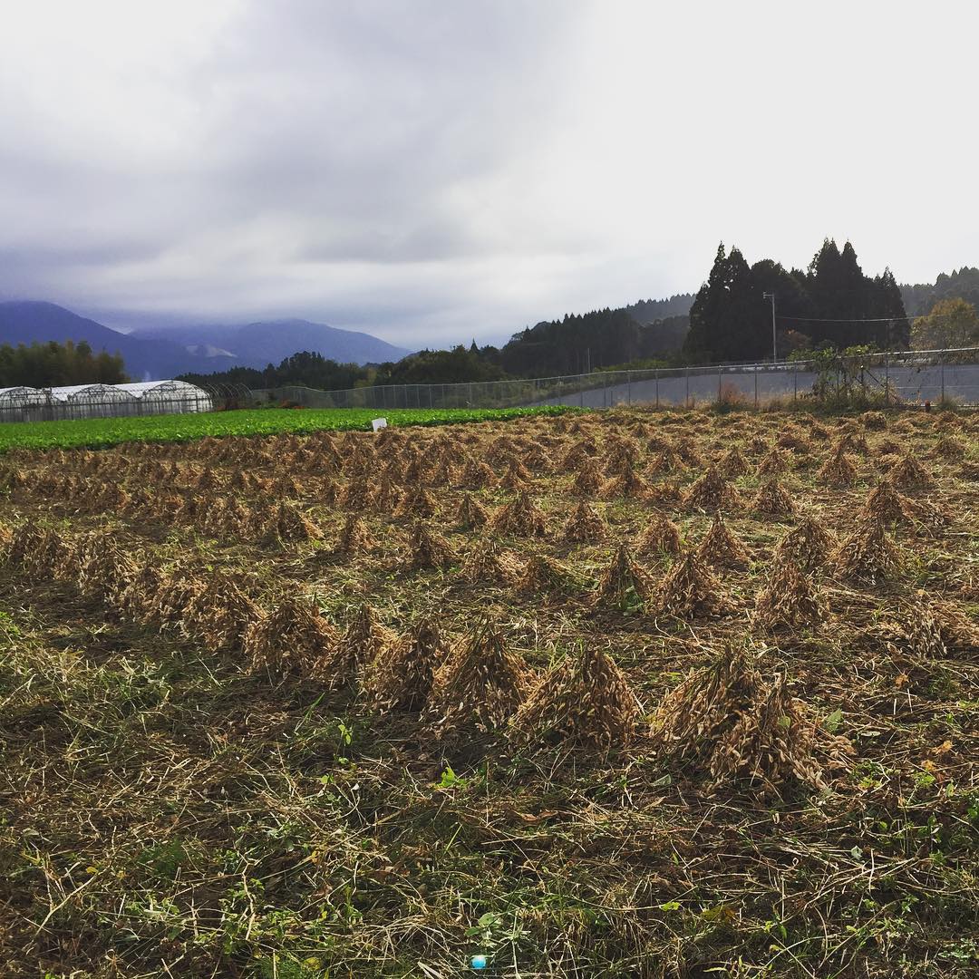 畑Bにて、椎葉黄大豆の刈り取り終了。この面積で2日かかってしまった。本丸の畑Aはこの調子で1人でやると1週間かかることに。雨だしどうするか… #大豆
