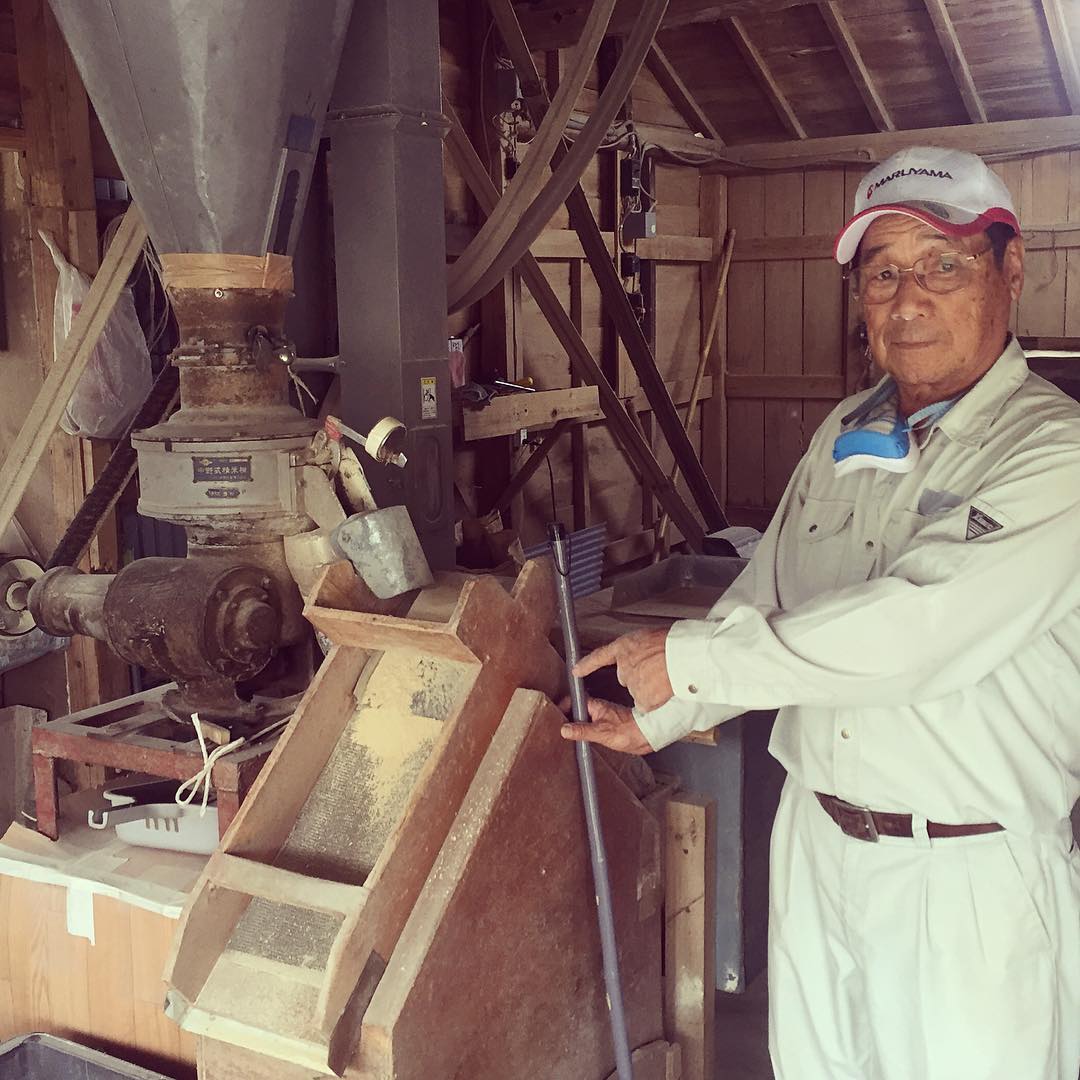 この3月から精麦所を任されることになった渡邉さん。とても綺麗好きで誠実な方です。写真撮らせてと頼むとなぜか精麦する機械を指差してくれました。 #機械たち #人々