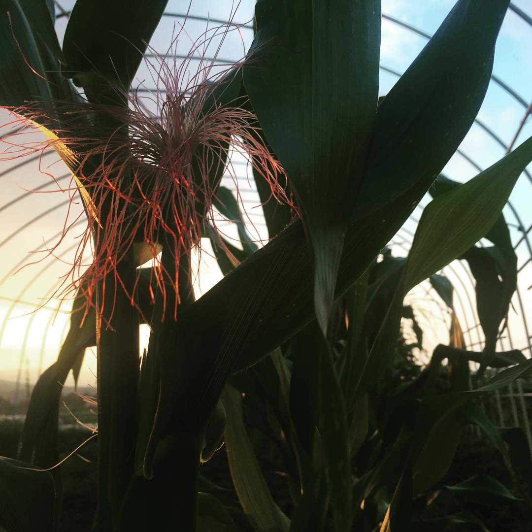 在来もちきびの赤が美しく映える夕暮れ時