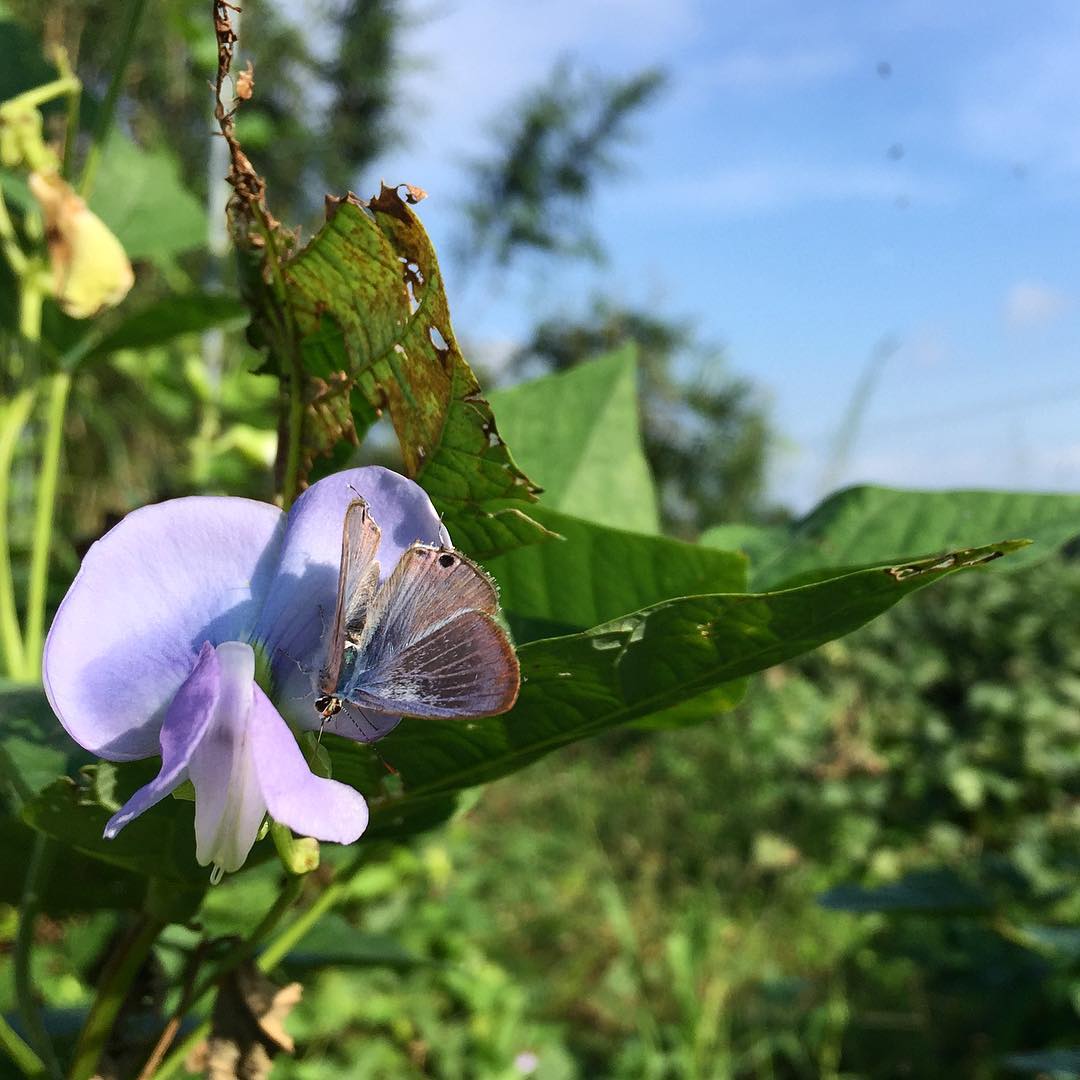 まだまだとれる四角豆。花と同じ色の蝶々が羽をゆっくり開いたり閉じたりしていました。