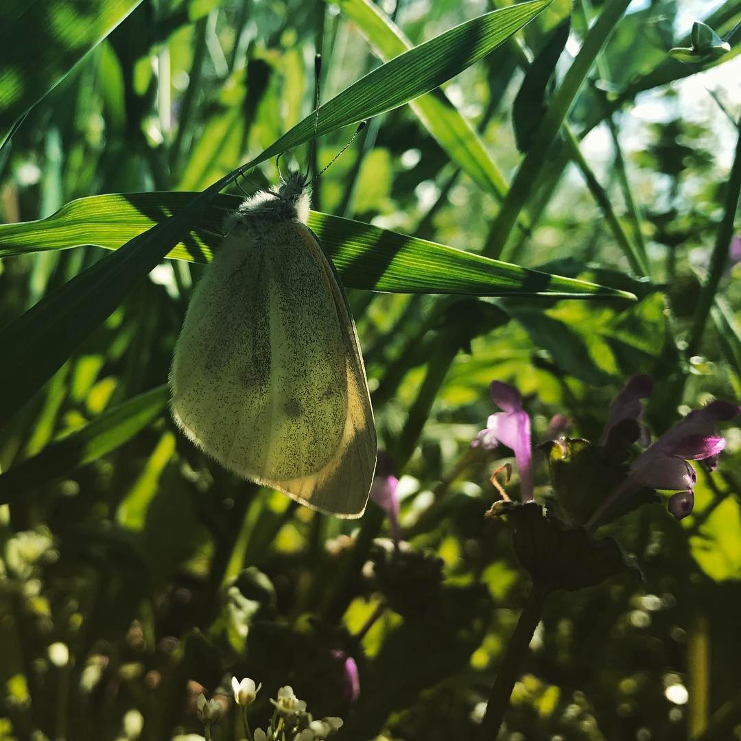 麦とモンシロチョウとホトケノザ。草抜きしてたら寄ってきたよ
