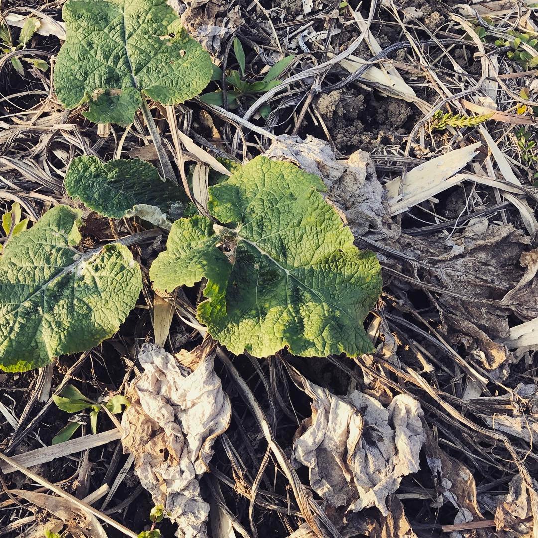 ゴボウのタネをとりたくて。調べると2年目にようやく花をつけるらしい。葉が全部枯れてダメかなと思ったらまたちゃんと出てきました。 #大浦ゴボウ