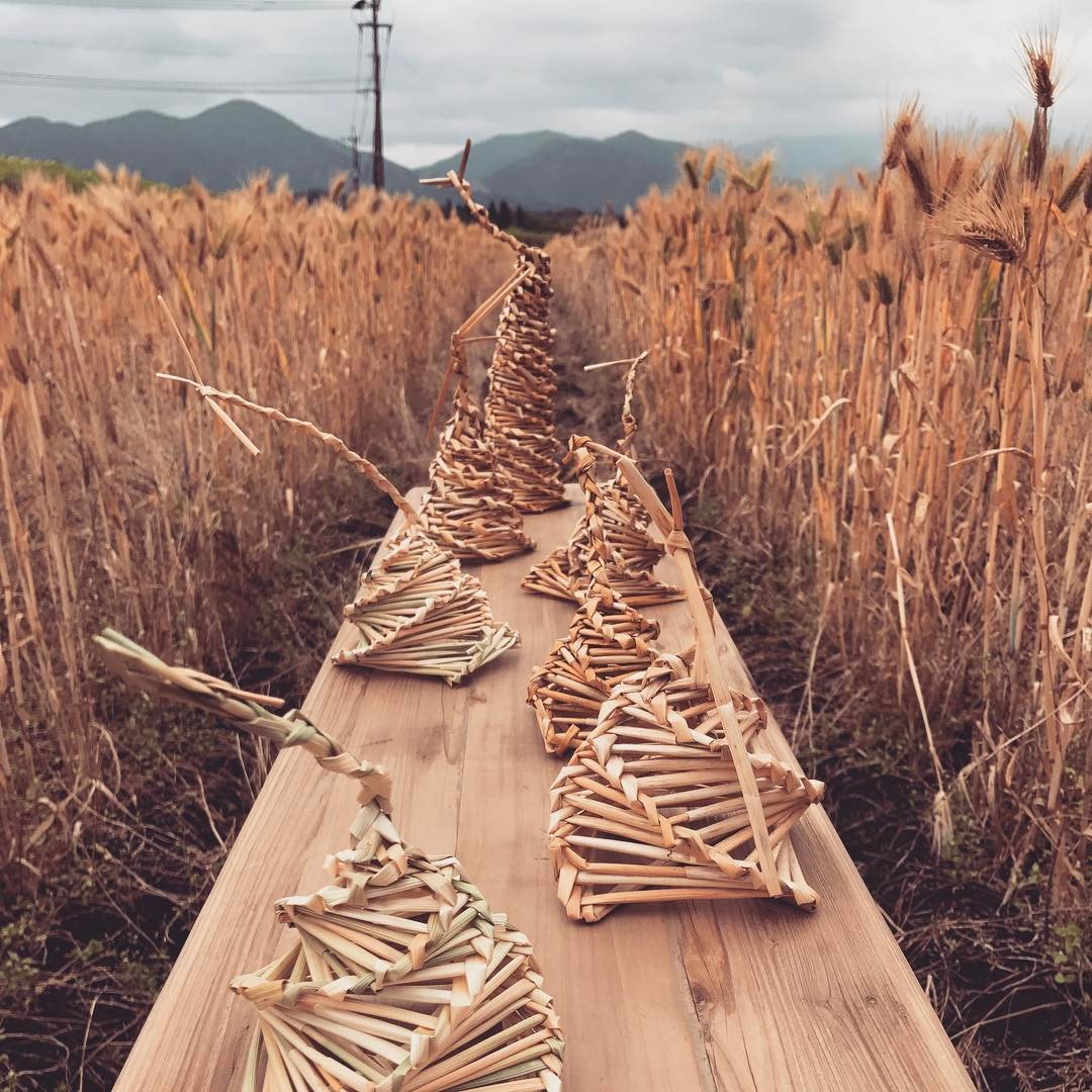 麦畑で開催した蛍籠づくりワークショップ。同じことをしているのに、編む人によって違う形になるのがまた面白いですね^ ^ #蛍籠 #ワークショップ