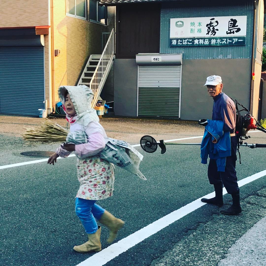 加工場の大家さんとチヅちゃん。今日はおつかれさまでした。シップ薬をくれたけど「二度とやらんかいね!」と言って笑いました。