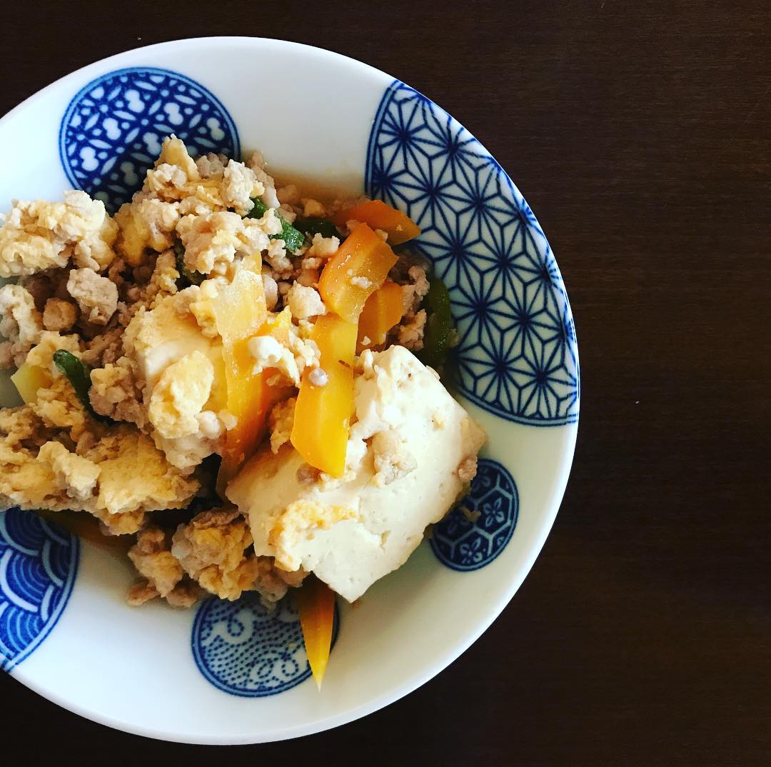 今日は薄味の気分。おぼろ豆腐にオクラ入れてみた。