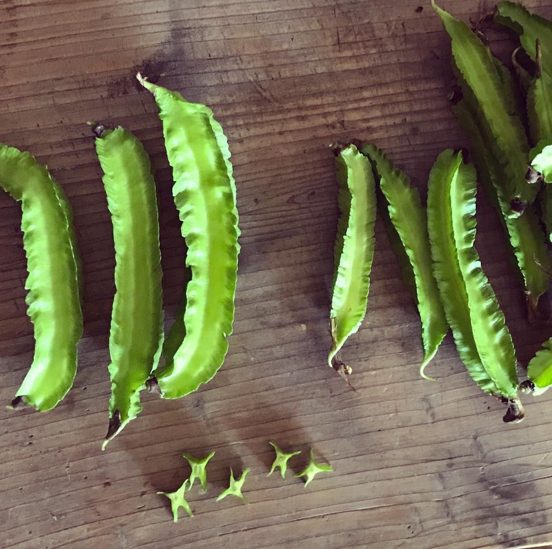 四角豆が沢山採れるようになりました。別名ウリズン。鮮やかな緑色、ほのかな苦味とシャッキリした歯応え、切り口も可愛い。