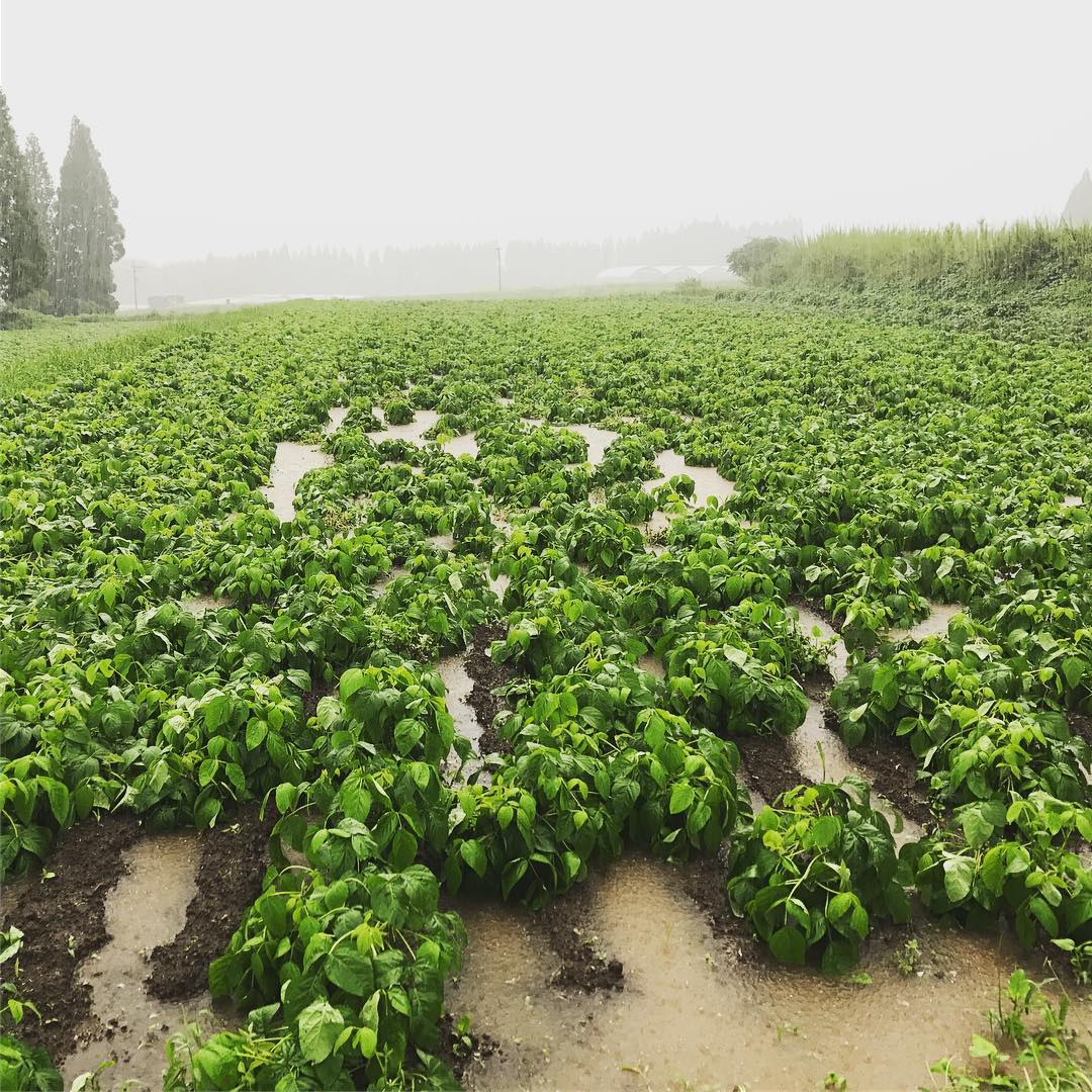 雨が凄まじい。こうして大豆のために畝立てしてなかったら間違いなく法面崩れてたな