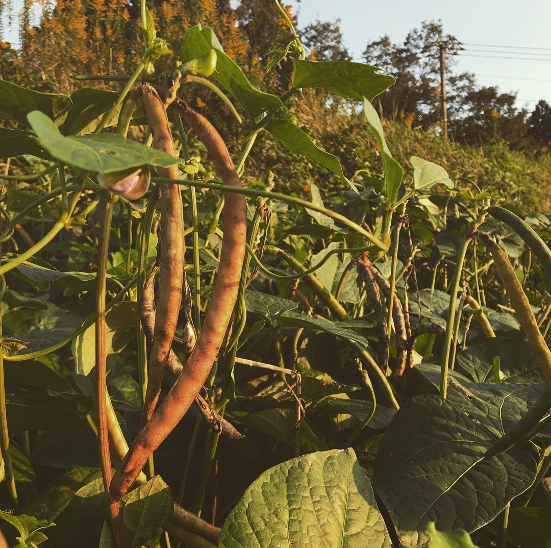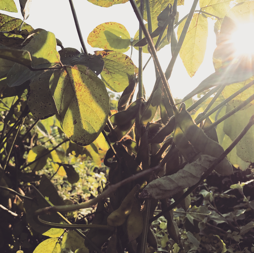 台風一過の小豆と大豆畑。お日様、沢山太らせてあげてください!