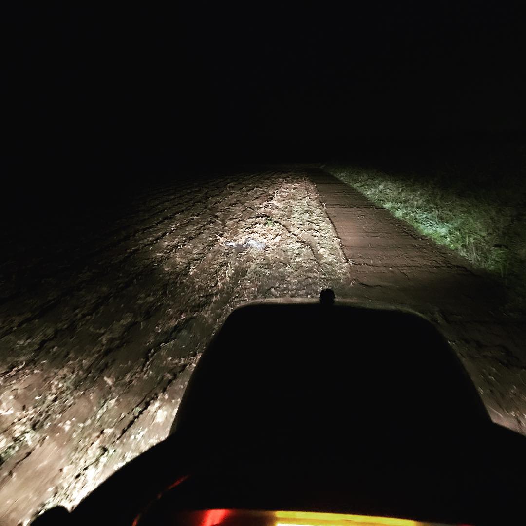 夜中のトラクター。辺りは真っ暗。この辺は人も住んでないし車も通ることはありません。