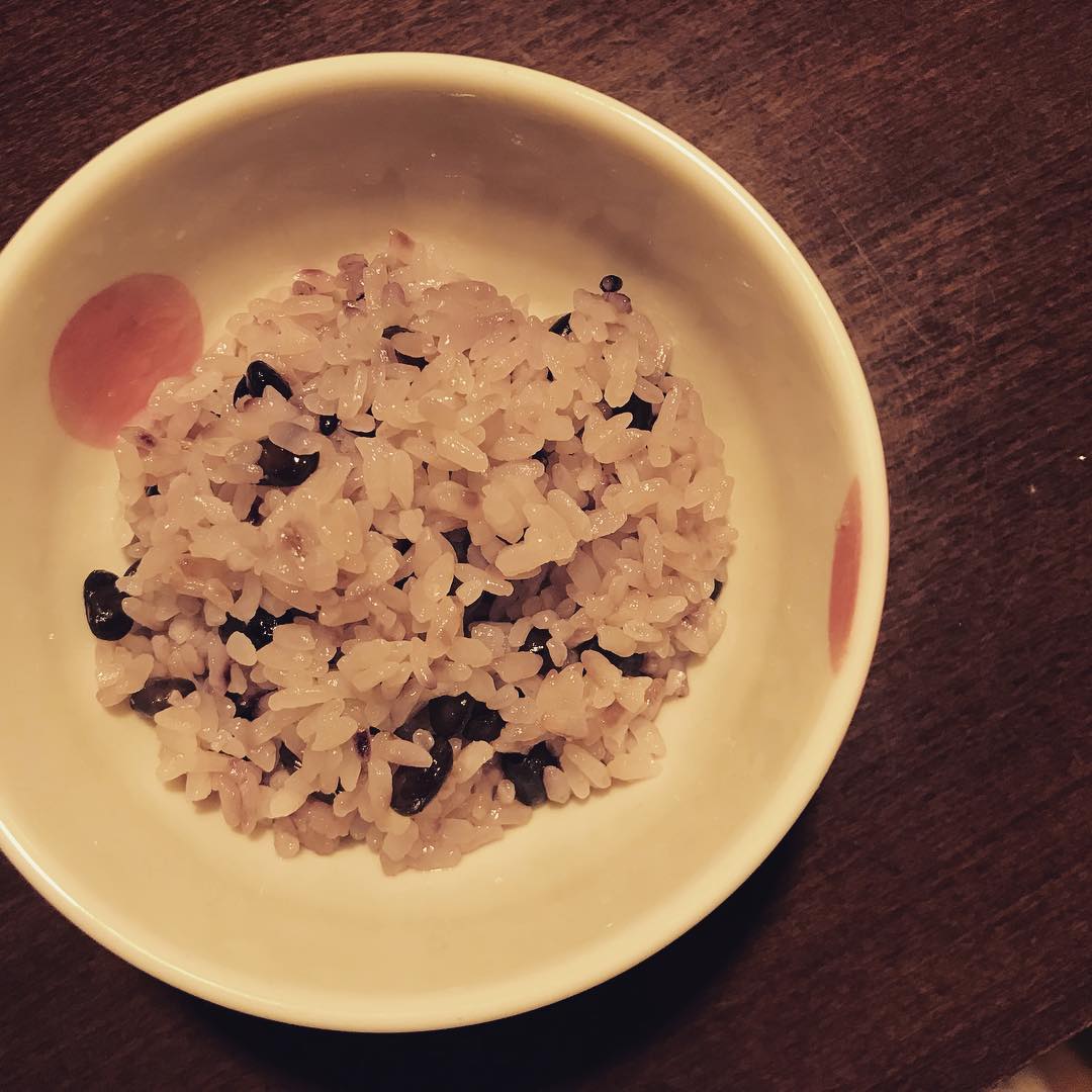 ほんのり紫豆ごはん。今回は娘のお茶碗で。