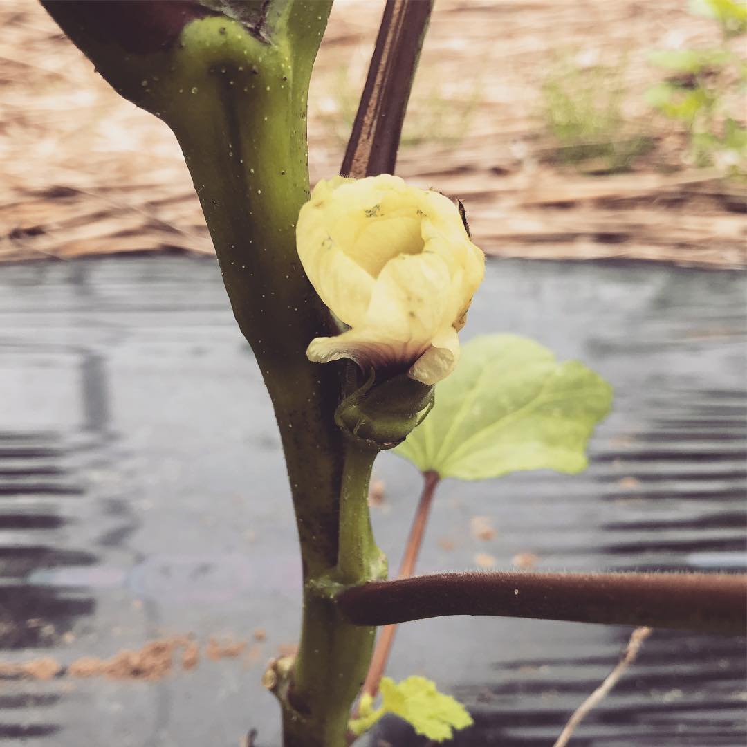 それでも咲こうとしていたオクラの一番花。そうだこの雨がやんだら、またあの暑い暑い夏がやってくるんだ。