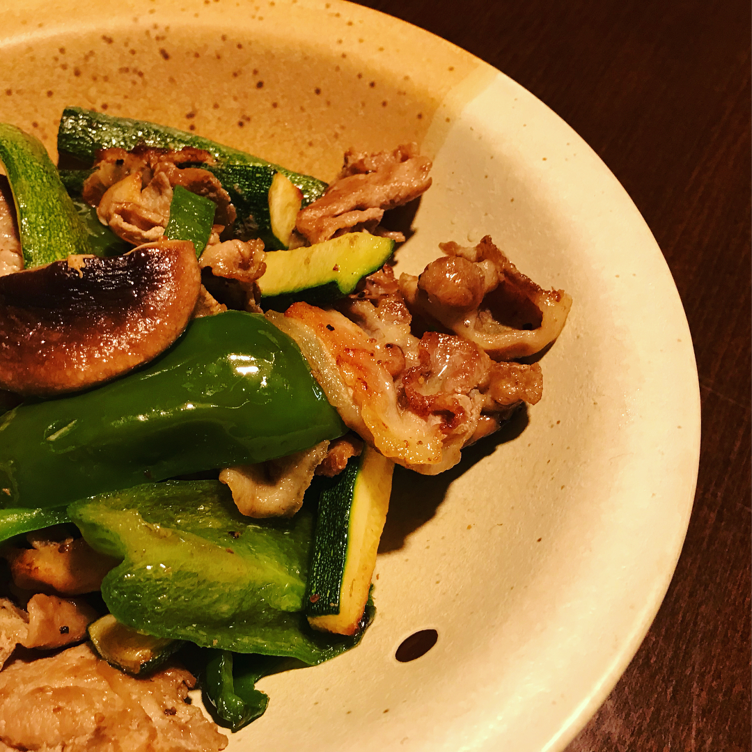 冷蔵庫の野菜在庫一掃となるバター炒め!アンド、ナスがとれたから早速の味噌煮浸し!しかしこちらにもズッキーニが紛れ込ませてあるのであった。 #お父さんごはん #自家製ズッキーニ祭り
