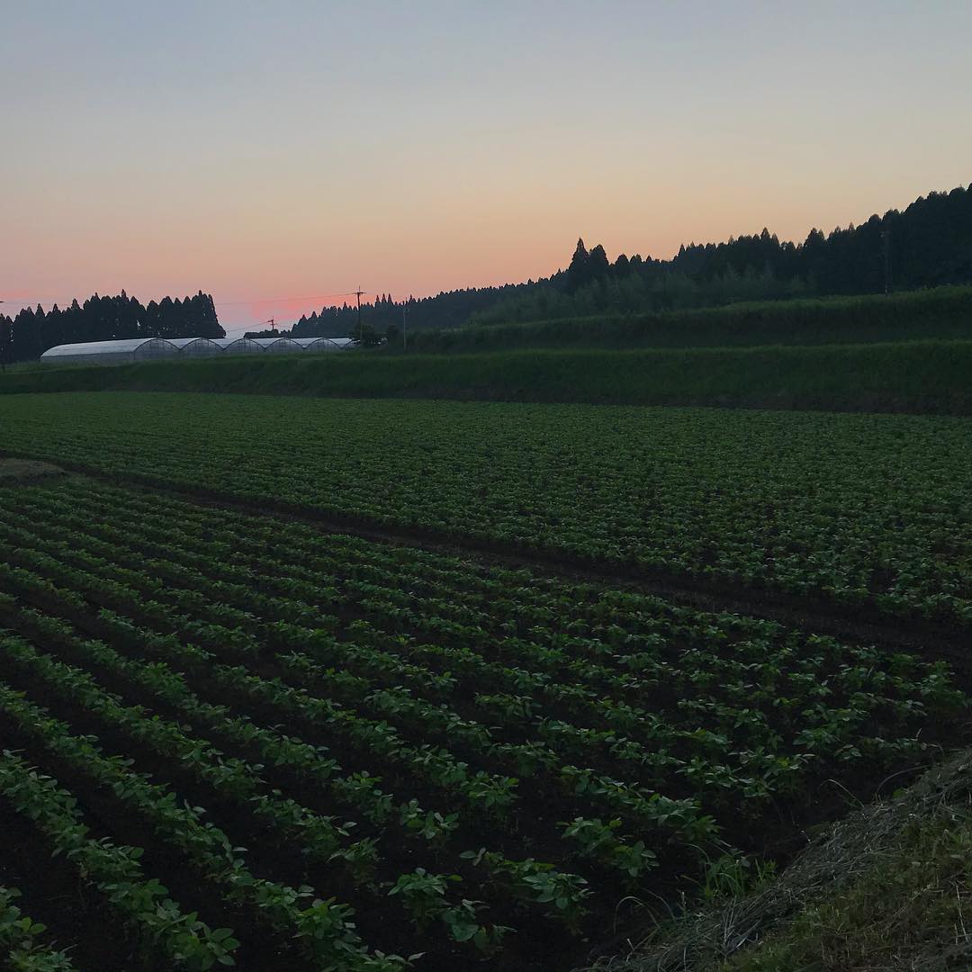 大豆の中耕2回目開始です。風があって気持ちいい朝。でも早速ブヨに噛まれた朝。