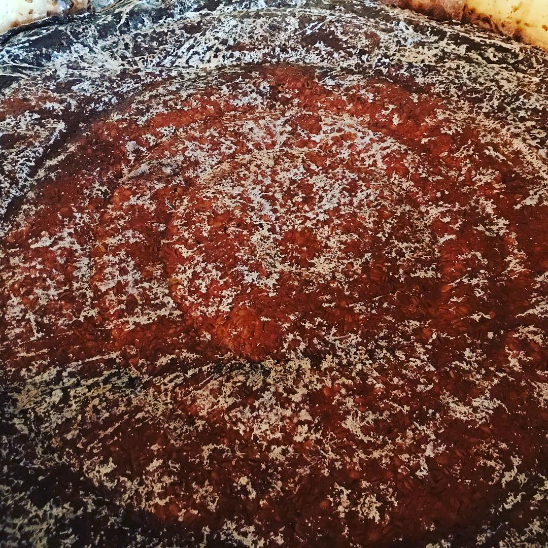 樽開き。春の仕込み味噌はこれでおしまい。4ヶ月でかなり熟成されてます。この樽が来月末までもってくれると嬉しいんだけど、、 #麦味噌