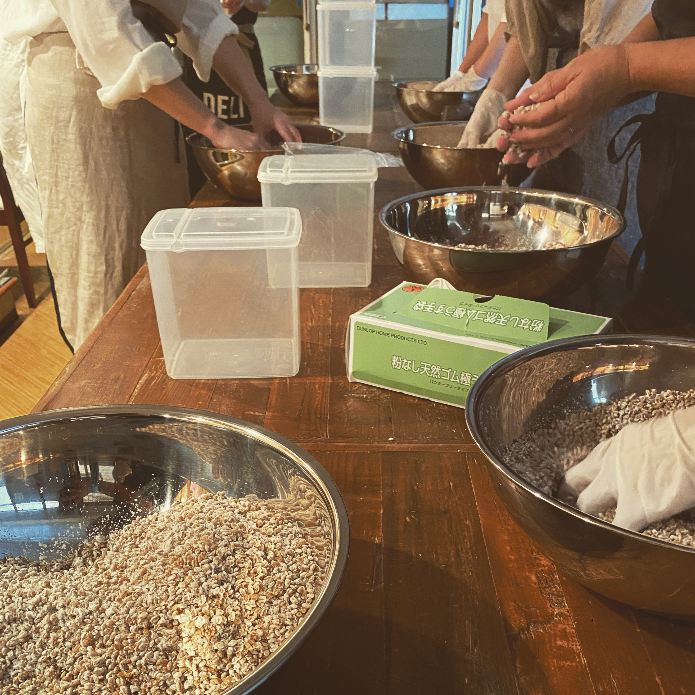 お味噌をはじめて仕込む方はぜひどうぞ。大豆、麦、塩、すべて自社生産だから話せる内容の濃いみそ講座です。市販のお味噌の表示のからくりや、自分で仕込む味噌との違いなど、「えっ!そうなの!?」というお味噌の話をたくさんお伝えしています。味噌について詳しくなれるほか、お料理で味噌を使い分けられるようになりますよ