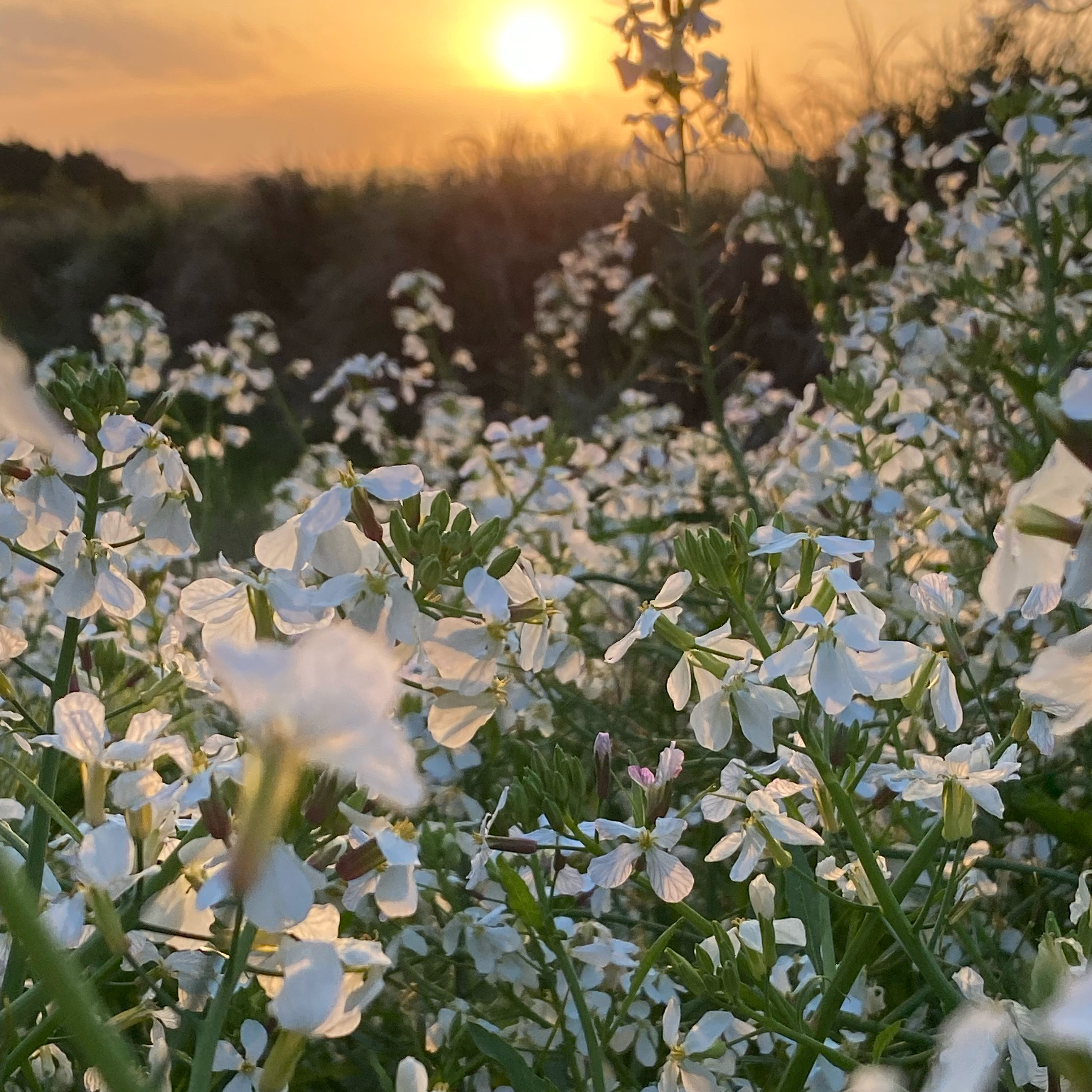桜と同じく大根の花も満開で、この時間帯はピンクや水色やオレンジに花が輝いて本当にキレイ。