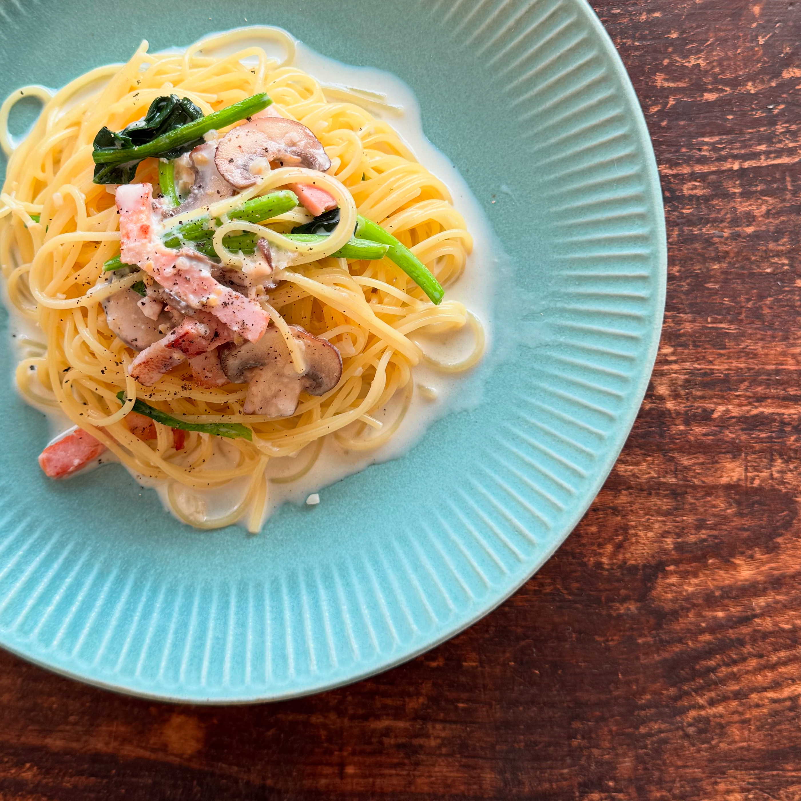 さらに大麦粉でとろみをつけるとパスタによく絡まって…チーズたっぷり食べてる感じなのに胃もたれしないし、体にいい発酵食、味噌を食べてるってお得感すごい!