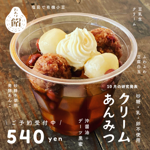 あんみつ好きのみなさん、お待たせいたしました!発酵スイーツ研究所、10月の研究発表は「クリームあんみつ」です。