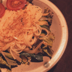 本日は冷製パスタ。炒め玉ねぎとニンニクの風味とブラックペッパーが爽やか!トマトはフードカーニバルでご一緒したごくとまさん!
