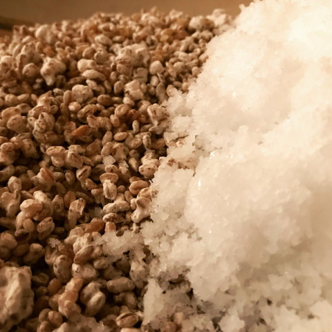 塩と麹が混ざる時。思い出されるあの海、あの空。さて、混ぜますか!麹カビさんごめんなさい。塩で破壊させていただきます。 #みそ仕込み #沖の潮