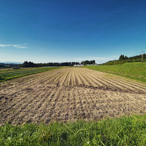 ここくの畑はこの大きさの畑が全部で7枚ぐらい。密植せず風通しをよくすることで、防カビ剤を巻くことなく無農薬で育てています。