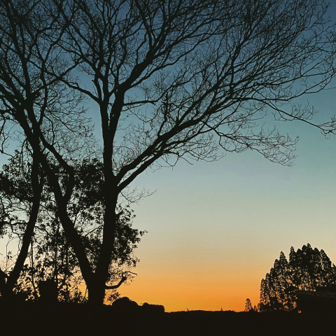 まるで切り絵の中に迷い込んだような、風のない朝の畑から。