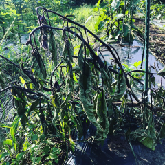 プックリと大きくなった実。1つ2つと採れ始めて元気いっぱいだった茄子は、台風で根元が折れました。