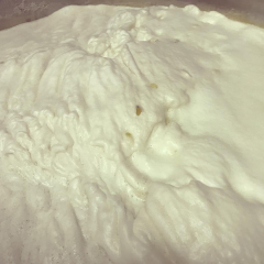 この泡は苦味につながるといわれるサポニンが浮き上がってきたもの。大豆の漬け汁を使えば使うほどこの泡がたくさん出てきます。