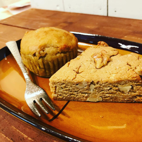 ここくの大麦粉を100%使って作ってくれている、あるcafeさんのスコーンとマフィン。どちらも大麦粉の味がしっかり!おいしかった!
