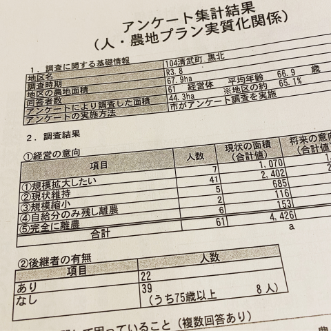 先日の夜の部寄り合いで配られた資料。うちの地区の現状が書かれています。