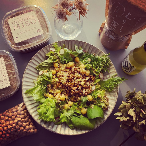 #発酵サラダ #ひよこ豆 #フムス #フムスみそ #むかし麦茶 #麦味噌 #在来種 #自然栽培 #宮崎 #清武 #サラダ #腸活 #腸活ダイエット