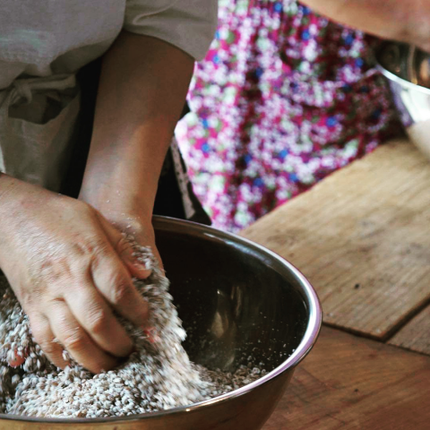お味噌をはじめて仕込む方に受けていただいています。カビの見分け方、処理の仕方の他、大豆、麦、塩、すべて自社生産だから話せる内容の濃いみそ講座。市販のお味噌の表示のからくりや、自分で仕込む味噌との違いなど、「えっ!そうなの!?」というお味噌の話をたくさんお伝えしています。味噌について詳しくなれるほか、お料理で味噌を使い分けられるようになりますよ