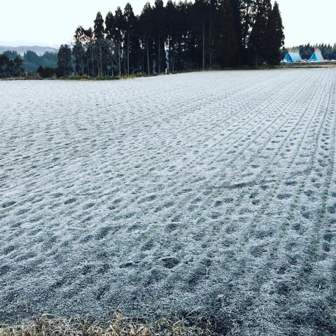 麦が見えない。これでも昨日より暖かな宮崎です。 #麦 #霜